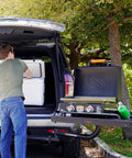 No need to unload your Ledge to access the back of your vehicle. The proprietary HitchFire swing arm allows for easy access to the trunk or tailgate. Cook on a stovetop, setup your laptop, or fire up a smoker, the large flat surface of the Ledge offers limitless possibilities.