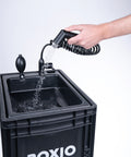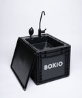 - Mobile: The washbasin with hand pump for on the go. Our BOXIO WASH in compact Eurobox format fits in every van, small garden shed and is suitable for camping
