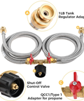 - ADAPTABILITY: Camping Propane Tank Adapter Hose for Grills, Stoves, Tailgating. It has two hoses with independent valves and attaches to the back of each regulator on the Forge 15. Grill longer and more economically using a standard propane tank!