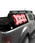 Free up rack space and mount fuel and water to the side or top of a Slimline II Rack. The 3CR12 stainless steel Mounting Plate can hold either one (1) 15L/4 gallon or two (2) 7.5L/2 gallon RotoPax Fuel, Water or Emergency/Storage Packs on the top of the rack or using the Side Mount Brackets, off the side of the rack. The Side Mount Brackets hold the Mounting Plate and are height (50mm/1.96'')) and tilt (12.5 degree increments up to 25 degrees) adjustable. Allows for RotoPax Packs to be positioned to suit the vehicle profile and rack contents. Also allows the RotoPax Packs to be slanted when fitted to the side of a Front Runner load bed rack, so as not to protrude excessively from the vehicle. Rotopax Rack Tray Mounting Plate - by Front Runner measures in at 480mm (18.9'') L x 250mm (9.8'') W x 20mm (0.8'') H, weighs 1,58kg (3.5lbs). Both the Side Mounting Plate and Side Mount Brackets are finished in the same durable, weather resistant black powder coating as the Slimline II Rack. Installation hardware and fitting instructions included. PLEASE NOTE: RotoPax Pack Mounts (RX-PM, RX-DLX-PM and RX-LOX-PM) must be used to secure RotoPax to the Front Runner Rotopax Side Mount. The RotoPax brand Pack Mounts are SOLD SEPARATELY. Depth: 6 in Length: 14 in Width: 21 in