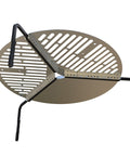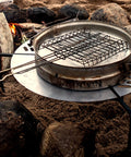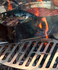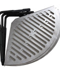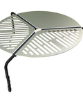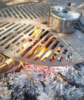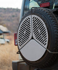 This ingenious, stainless steelcooking grate, stores over your spare wheel and takes up virtually no space. Laser cut 3CR12 stainless steel grill onaluminum legs. Grill and griddle sections for campfire cooking options. Hooks over a spare wheel (secure with Spare Wheel Step - by Front Runner, Strap Ratchet 4M Endless - by Front Runner or wheel cover - not included). Fits 29 to 35 tyres (740mm to 890mm). Depth: 3 in Length: 14 in Width: 19 in
