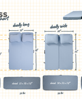 Dually Long 78"x50", Dually Wide 60"x72", Dually Short 50"x64" & Dually Queen 78"x60". Enhanced Memory Foam sleeps two comfortably with room for an adventure dog to join! The comforts of your home mattress in a portable, durable, camping trip-ready form. The Multi-Layer design provides optimal body alignment, pressure point relief, temperature control, and durable protection from the great outdoors.