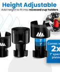 Offset the base from the expander to keep the adjacent cup holder open. This also allows two Ultimate Expanders to fit next to each other in most dual cup holder applications. Recessed or covered cup holders? No problem! We also include two spacers that can increase the height by 1" each. Between the height and offset adjustability there isn't a vehicle the Ultimate Expander will not work in.