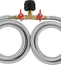 • Twin hose adapter hose to power 2 burners from single source