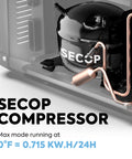Secop Compressor: Top tier cooling technology, cooling range from 0°F~50°F, to meet the needs of food cold storage, freezer. 5 year warranty on Secop compressor and 1 year for other parts.